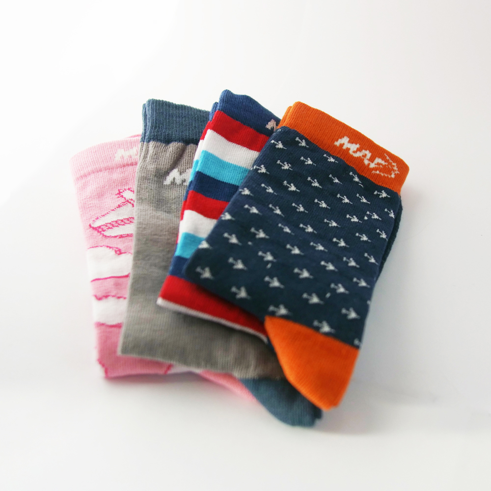 De maffe sokken zijn gemaakt van 95% katoen en 5% elastaan en zijn beschikbaar in meerdere ontwerpen en maten. Bestellingen worden binnen drie werkdagen verwerkt. Met de aankoop van deze sokken steun je het werk van MAF.