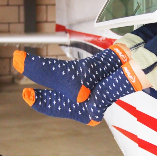 De maffe sokken zijn gemaakt van 95% katoen en 5% elastaan en zijn beschikbaar in meerdere ontwerpen en maten. Bestellingen worden binnen drie werkdagen verwerkt. Met de aankoop van deze sokken steun je het werk van MAF.